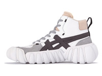 A high cut model combining classical court type shoe upper and rugged tooling. Light-weight and high bounce L-speva is used in the midsole, and this new tooling features fuze GEL technology in the heel. An Ortholite X - 40 sockliner are adopted to enhance cushioning and to provide excellent comfort. DETAIL INFORMATION - Brand: Onitsuka Tiger - Country of Manufacture: Vietnam - Part No: 1183B453 - 1183B453.100 WHITE/GRAPHITE GREY - Upper material/surface: Leather×Synthetic fiber - Outer Sole Material: Rubber