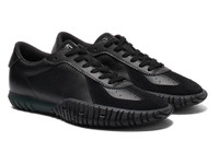 "DUCK TIGER TR," a modern update of classic charm. Based on a simple and refined design of Onitsuka Tiger archive training footwears, it features a three-dimensional metal logo and ventilation holes for breathability, adding a playful touch. The unique sole shape reminiscent of a duck's bill, along with the plump silhouette in the forefoot, creates an impressive contrast in design. The upper is made of smooth cow leather and soft suede, providing luxury and durability. The outsole pattern is a modern twist on archive throwing shoes, while the lightweight and responsive midsole supports comfortable walking. Additionally, the heel incorporates GEL technology for excellent shock absorption. The high-performance sockliner gently wraps the foot and is removable for added convenience. Effectively placed flex grooves enhance flexibility, pursuing natural movement and superior cushioning. This multiple uses shoe excels in various settings, from casual to mode. DETAIL INFORMATION - Brand: ONITSUKA TIGER - Country of Manufacture: Vietnam - Part No: 1183C363 - 1183C363.002 BLACK/BLACK - Upper material/surface: LEATHER - Outer Sole Material: RUBBER