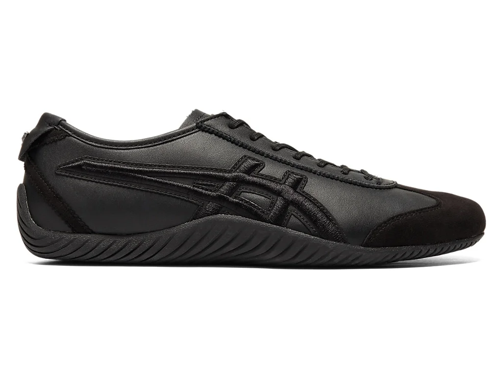 A pair that combines the iconic MEXICO 66 model from Onitsuka Tiger with design inspiration from driving shoes. Featuring a silhouette that enhances the style of your feet and an elevated sole that offers smooth support, even while driving. The upper is crafted from clean, smooth leather, blending design appeal with comfort. For added sophistication, Alcantara, a synthetic leather often found in luxury car interiors, is used in the toe and heel areas. The insole, made from high-cushion materials, gently supports the feet for comfort even during extended wear. Details like the metal accents on the heel flap and embroidered Onitsuka Tiger stripes reflect meticulous attention to design details. DETAIL INFORMATION - Brand: Onitsuka Tiger - Country of Manufacture: Vietnam - Part No: 1183C306 - 1183C306.001 BLACK/BLACK - Upper material/surface: LEATHER - Outer Sole Material: RUBBER