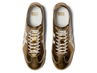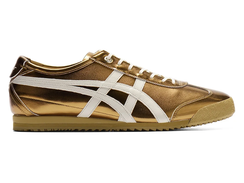 "METALLIC SERIES" from "MEXICO 66 SD" featuring the bold impact of the metallic color. The entire upper is made from recycled leather that balances softness with durability. By layering metallic foil over the recycled leather, the design achieves a vivid shine while also being environmentally conscious. The heel flap, adorned with hand stitching, is designed to prevent the rise of the heel flap and reduce the contact on the foot, supporting a comfortable fit. The lineup includes a total of six colors, featuring bold metallic colors. These sneakers express a unique individuality while embodying the strength, luxury, and fashion sense characteristic of Onitsuka Tiger. Country of Manufacture : Vietnam / Indonesia DETAIL INFORMATION - Brand: Onitsuka Tiger - Part No: 1183C468 - 1183C468.200 DESERT CAMP/CREAM - Upper material/surface: LEATHER / RECYCLED LEATHER - Outer Sole Material: RUBBER