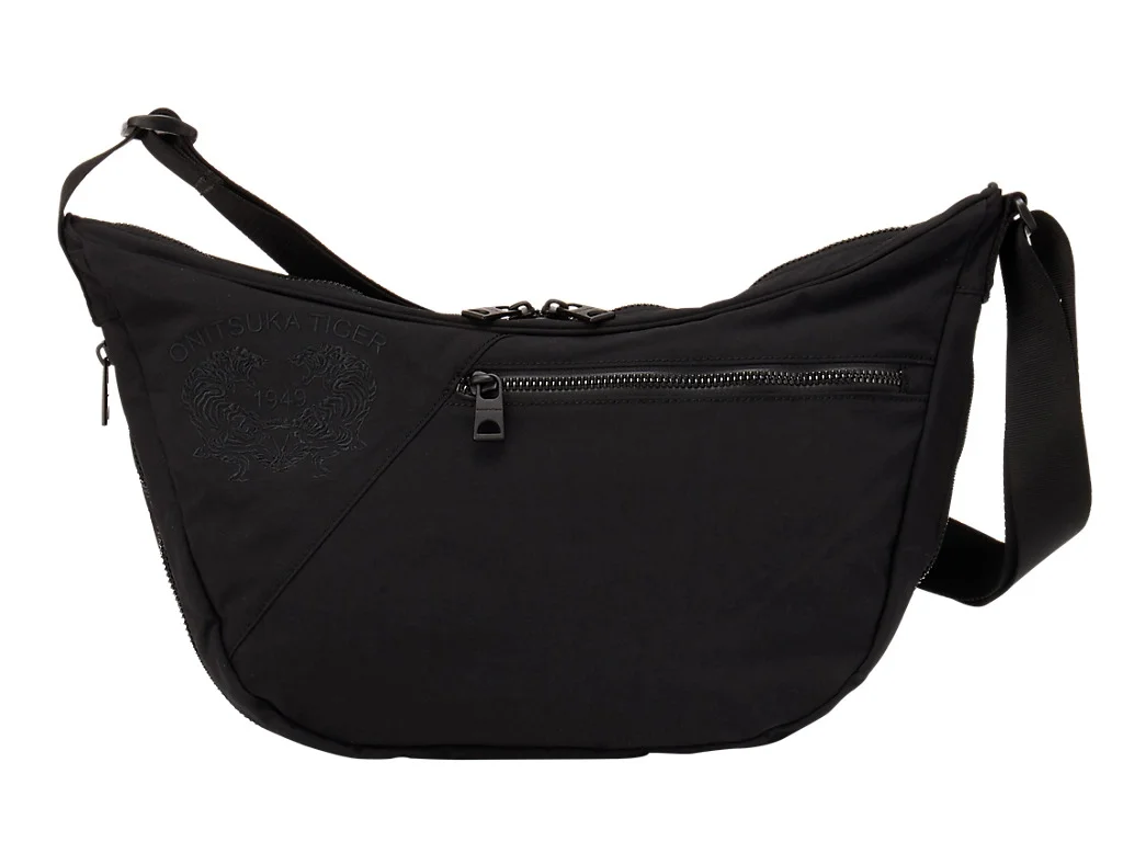 A messenger bag featuring an asymmetrical silhouette and tiger embroidery. ■A distinctive presence that elevates your style The asymmetrical design is complemented by graphic embroidery of two turning tigers on the left side, creating a unique and striking appearance. There are zippered pockets both inside and outside, and the bottom of the bag features a zipper that allows for adjusting the width, providing ample storage despite its compact size. Approx10-14L Size ( measurement : cm ) : W42×H21(26)×D11(17) DETAIL INFORMATION - Brand: Onitsuka Tiger - Country of Manufacture: Vietnam - Part No: 3183B218 - 3183B218.001 BLACK - Quality: Shell Polyamide100% LiningPolyester100%