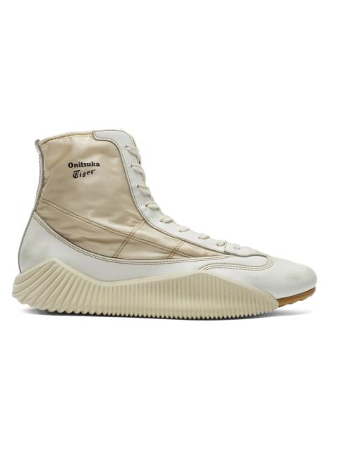 The "WRESTLING™ A60 NM" model commemorates Onitsuka Tiger's 75th anniversary and is modeled after the historic wrestling shoes developed for the 1964 Tokyo Olympics. To recreate these iconic shoes, Japanese artisans have individually hand-dyed and vintage-processed each pair, resulting in a unique texture. The upper is made of 100% nylon twill, which imparts a refined sheen. The smooth leather parts are finished with an antique look to evoke a sense of passage of time. The same sole as the "ACROMOUNT™" model is used, with sockliner that provide excellent rebound for a comfortable fit. This shoe showcases the high quality and craftsmanship typical of Onitsuka Tiger's NIPPON MADE line. -Made in Japan DETAIL INFORMATION - Brand: NIPPON MADE - Country of Manufacture: Japan - Part No: 1183C410 - 1183C410.100 CREAM/CREAM - Upper material/surface: LEATHER - Outer Sole Material: RUBBER・ELASTOMER