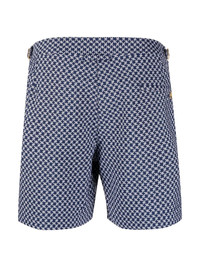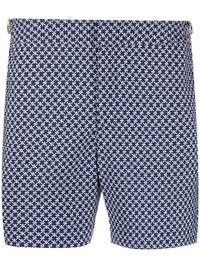 all-over graphic-print swim shorts dark blue all-over graphic print concealed front fastening rear welt pocket Be mindful to try on swimwear over your own garments. Imported Composition Polyester 100%