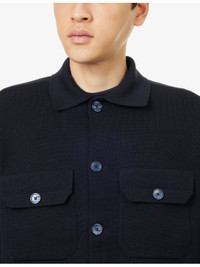 PRODUCT DETAILS - Orlebar Brown wool jacket - 100% merino wool - Exposed button fastening at front - Relaxed fit, spread collar, long sleeves, two buttoned pockets at front, all-over knitted - Hand wash cold - Made in Turkey - Size medium: length 27in / 69cm, chest 44in / 112cm - Model is 6ft 2in/1.88m and wears a size medium - Midweight, stretchy Ref: R04548876