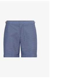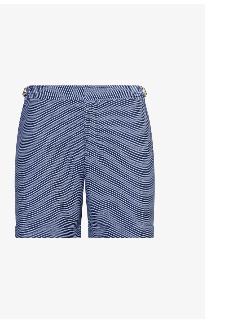 PRODUCT DETAILS - Orlebar Brown swim shorts - 100% polyamide - Button and zip-fly fastening at front - Regular fit, mid-rise, two buckled waist adjusters, two slip pockets at sides, branded patch at side, zipped pocket at back, all-over contrast pattern, lined - Machine wash cold - Made in Portugal - Model is 6ft 1in/1.85m and wears a size UK 30 - Lightweight, non-stretch