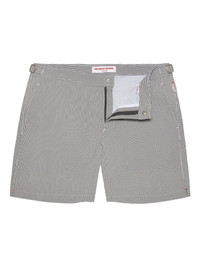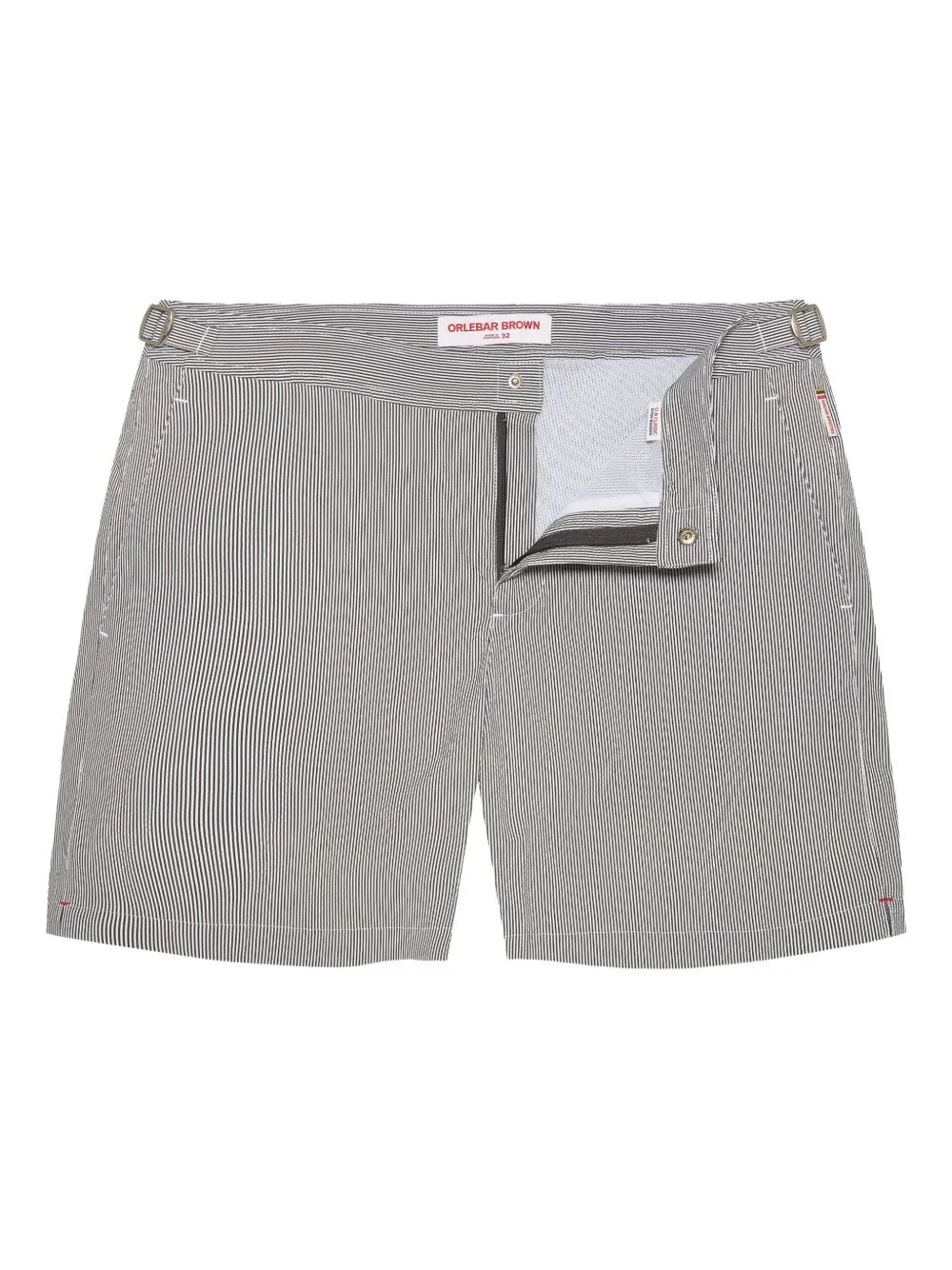 Bulldog pinstriped swim shorts Highlights - Grey - Concealed zip and press-stud fastening - Adjustable waist tabs - Side pockets - Logo tag detail - Be mindful to try on swimwear over your own garments. Imported Composition Outer: Polyester 34%, Polyamide 34%, Elastomultiester 32% Lining: Polyester 100% Washing instructions Machine Wash