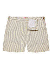 Bulldog stripe swim shorts Highlights - Off-white - Pinstripe pattern - Gold-tone buckle fastening - Side pockets - Button fly - Flat front - Be mindful to try on swimwear over your own garments. Imported Composition Polyamide 74%, Elastomultiester 26% Washing instructions Read Manufacturer Guidelines
