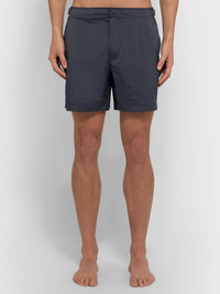 Orlebar Brown's 'Bulldog' swim shorts are a best-seller thanks to their adjustable waistband and tailored fit. Designed to be even more flexible than the original, this 'Sport' pair is made from quick-drying shell that's tested to ensure it won't lose shape or fade. The dark-grey hue will seamlessly fit in anywhere off the sand, too. Shown here with Onia Polo shirt, Castaner espadrilles, The Lost Explorer tote. Size & Fit - Fits true to size. Take your normal size - Straight leg, mid-rise style - Mid-length - These swim shorts are adjustable at the waist - Those who are in between sizes should go up to the nearest size - Model wears a 32 - Model measures: waist size 32, height 6'2"/ 188cm Details & Care - Dark-grey shell - Adjustable waist tabs, two front slash pockets, back zipped pocket, side slits, mesh lining - Snap and zip fastening - 87% polyamide, 13% elastane; lining: 95% polyester, 5% elastane - Machine wash - Five-year guarantee - Come with a waterproof bag