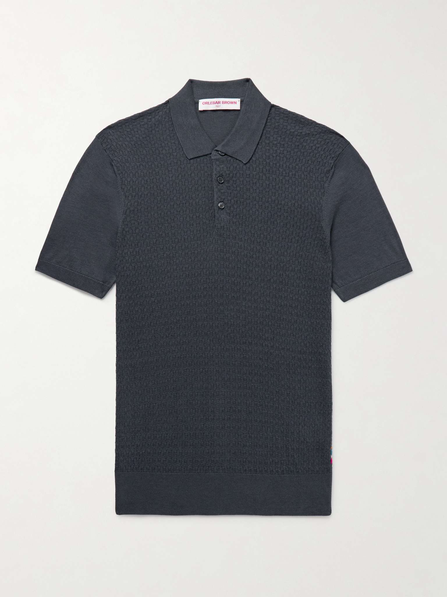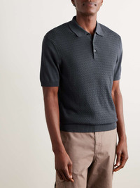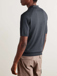 Orlebar Brown's 'Burnham' polo shirt is knitted with a textured lattice pattern, so it's a bit more elevated than your everyday rib. It's made from a soft silk and cotton-blend in an endlessly versatile 'Granite' shade. Size & Fit - Fits true to size. Take your normal size - Designed for a slim fit - Lightweight knit - Model is shown wearing a M - Model measures: chest 38"/ 96cm, height 6'1"/ 185cm Details & Care - Grey silk and cotton-blend - Button fastenings - 62% silk, 38% cotton - Hand wash - Designer colour: Granite