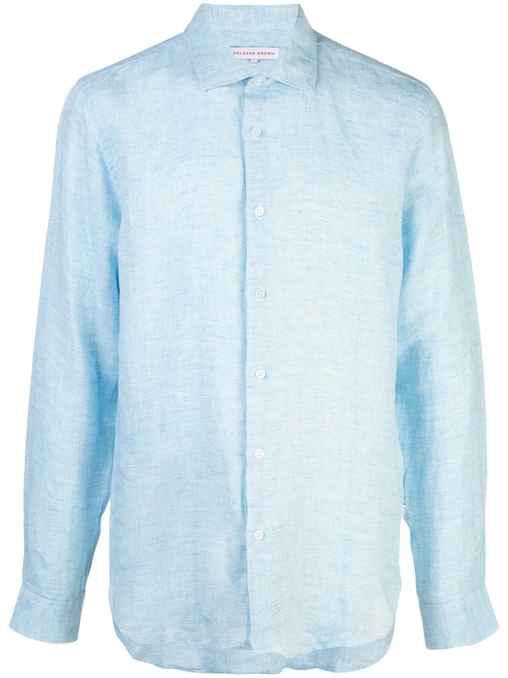 classic collar button shirt Light blue linen classic collar button shirt from Orlebar Brown featuring long sleeves, button cuffs, a classic collar and a front button fastening. Imported Composition Linen/Flax 100% SIZE & FIT Model measurements Height 6 ft 1 in(1.85 m) Bust/Chest 39.76 in(101 cm) Hips 36.61 in(93 cm) Waist 27.95 in(71 cm) Measurement CHEST 39.37 in(100 cm) SLEEVE LENGTH 33.85 in(86 cm) LENGTH 29.13 in(74 cm) Washing instructions Machine Wash