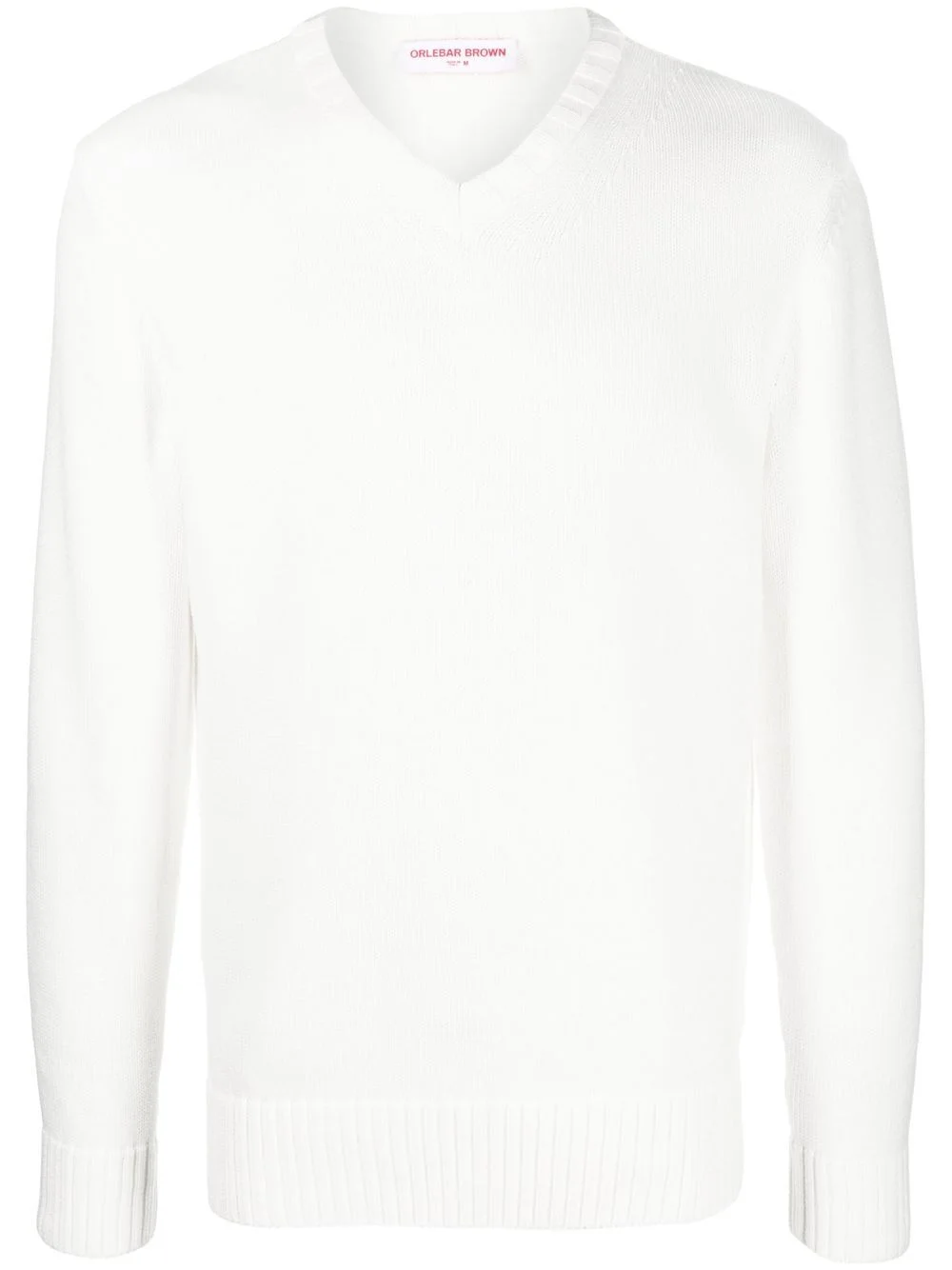Clifton V-neck knit jumper cloud white cotton ribbed detailing V-nec long sleeves straight hem Made in Italy Composition Cotton 100% Washing instructions Hand Wash