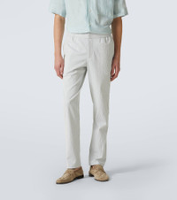 Product Details - Material: 93% cotton, 4% polyamide, 3% nylon - Care instructions: dry clean - Made in Italy - Designer color name: Wave Blue/ White Sand Stripe - Item color: white, blue - Closure: zipper fly, button and hook fastenings, drawstring - Pockets: side slit pockets - Item number: P01059624 Size & Fit - True to size - Elasticated waist - Adjustable at the waist - Non-stretchy fabric - Straight leg - Height of model is 190cm-75" and wears a size 32
