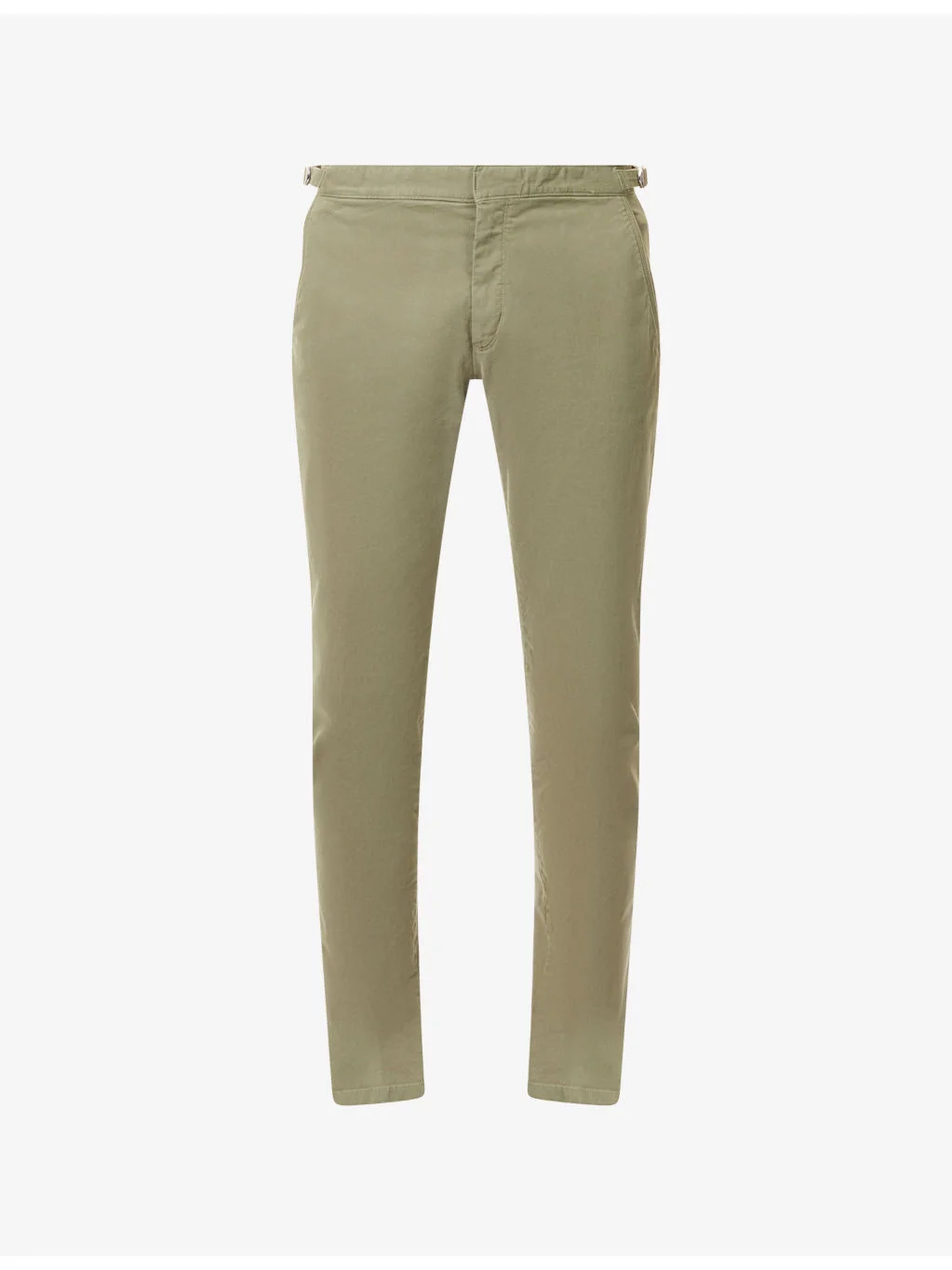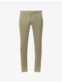 PRODUCT DETAILS - Orlebar Brown stretch-cotton trousers - 97% cotton, 3% elastane - Tailored fit, mid-rise, slim tapered leg, structured waistband with waist adjusters, slip pockets at front, pockets at back, branded hardware - Machine wash cold - Size UK 30: rise 9in / 22.5cm, inside leg 32in / 81cm, leg opening 14in / 36cm - Model is 6ft 2in/1.88m and wears a size UK 30 - Lightweight, slight stretch Ref: R04498450