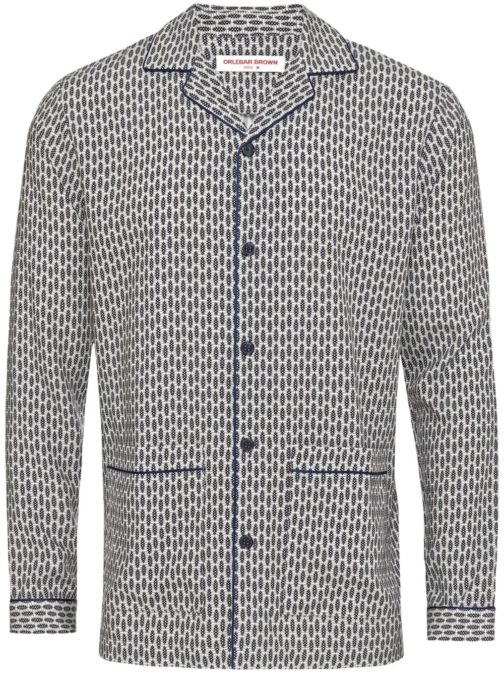 Gabel shirt Highlights - Midnight blue/off-white - Lyocell - Geometric print - Piped-trim detailing - Camp collar - Long sleeves - Buttoned cuffs - Two front patch pockets - Short side slits - Step hem Imported Composition Lyocell 100% Washing instructions Machine Wash