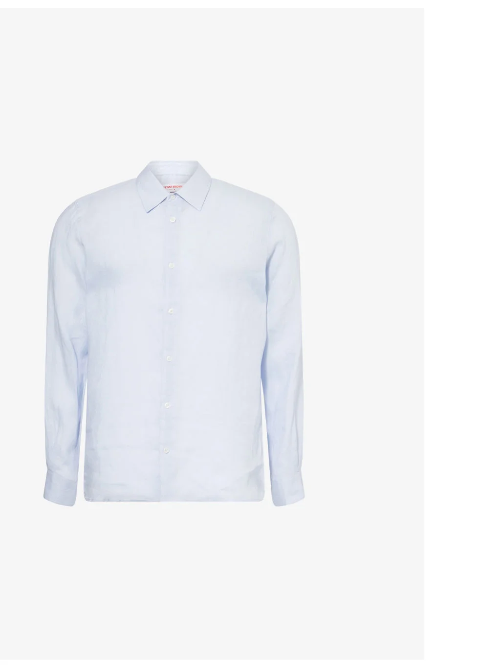PRODUCT DETAILS - Orlebar Brown linen shirt - 100% linen - Button fastenings at front - Spread collar - Buttoned cuffs - Regular fit, long sleeves, pleated cuffs, pleated yoke, branded pearlescent buttons, curved hem - Machine wash cold - Made in Portugal - Model is 6ft 1in/1.85m and wears a size medium - Lightweight, non-stretch Ref: R04231034-S