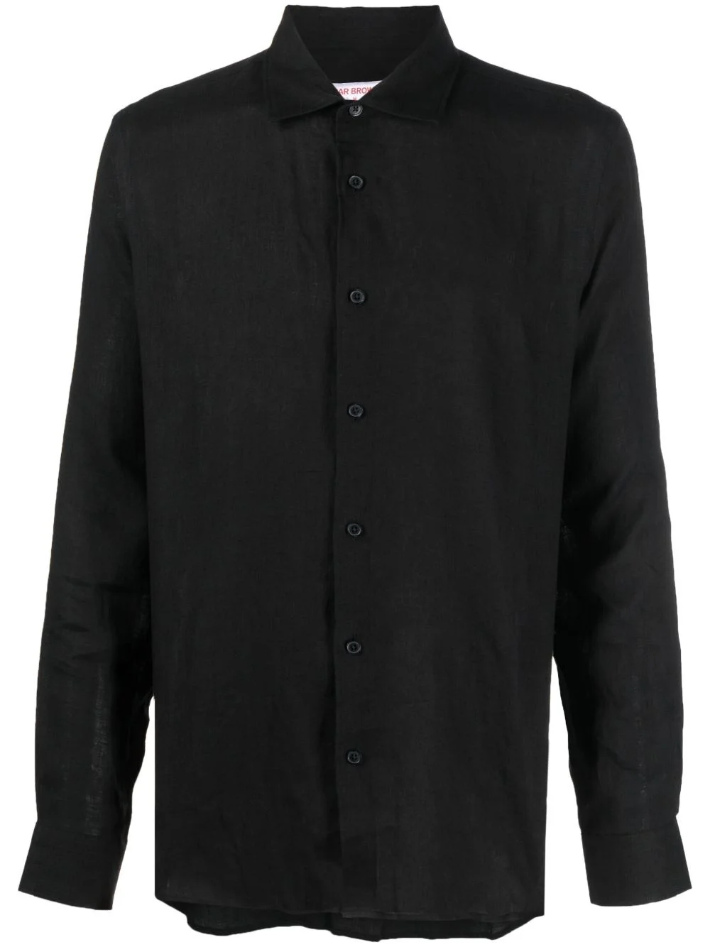 Giles long-sleeve linen shirt Highlights - Black - Linen - Spread collar - Front button fastening - Long sleeves - Buttoned cuffs - Curved hem Imported Composition Linen/Flax 100% SIZE & FIT Model measurements Height 6 ft 1 in(1.85 m) Bust/Chest 35.43 in(90 cm) Hips 35.82 in(91 cm) Waist 27.55 in(70 cm) FittingInformation Designed for a regular fit, allowing for a comfortably loose fit throughout the body Made from a midweight non-stretch fabric This piece fits true to size – take your usual size