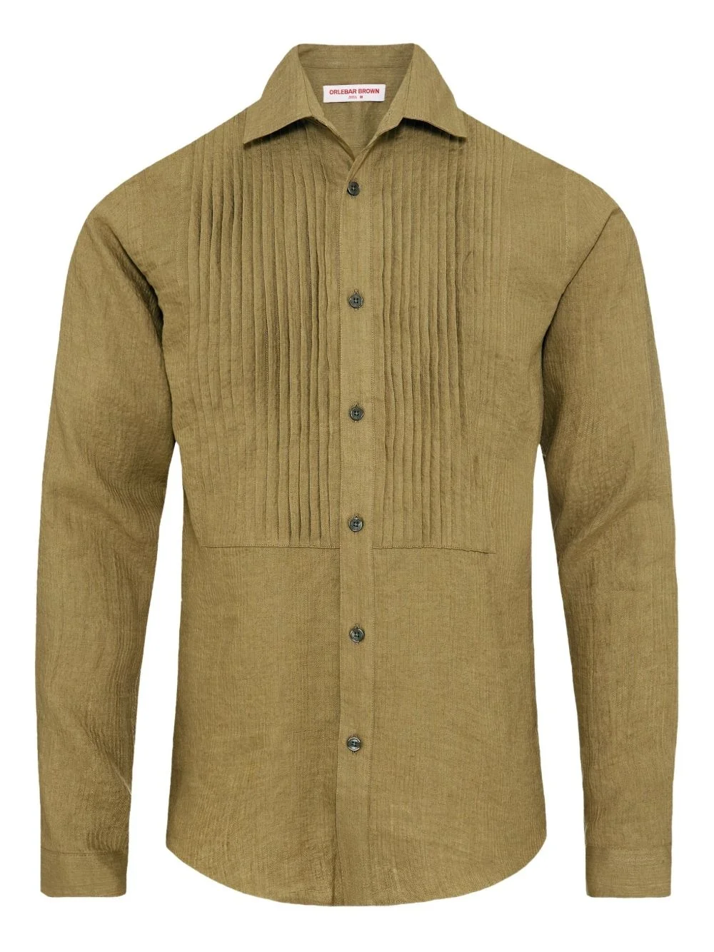 Giles shirt Highlights - Light olive green - Front button fastening - Buttoned cuffs - Pleat detailing - Bib collar Imported Composition Cotton 70%, Linen/Flax 30%