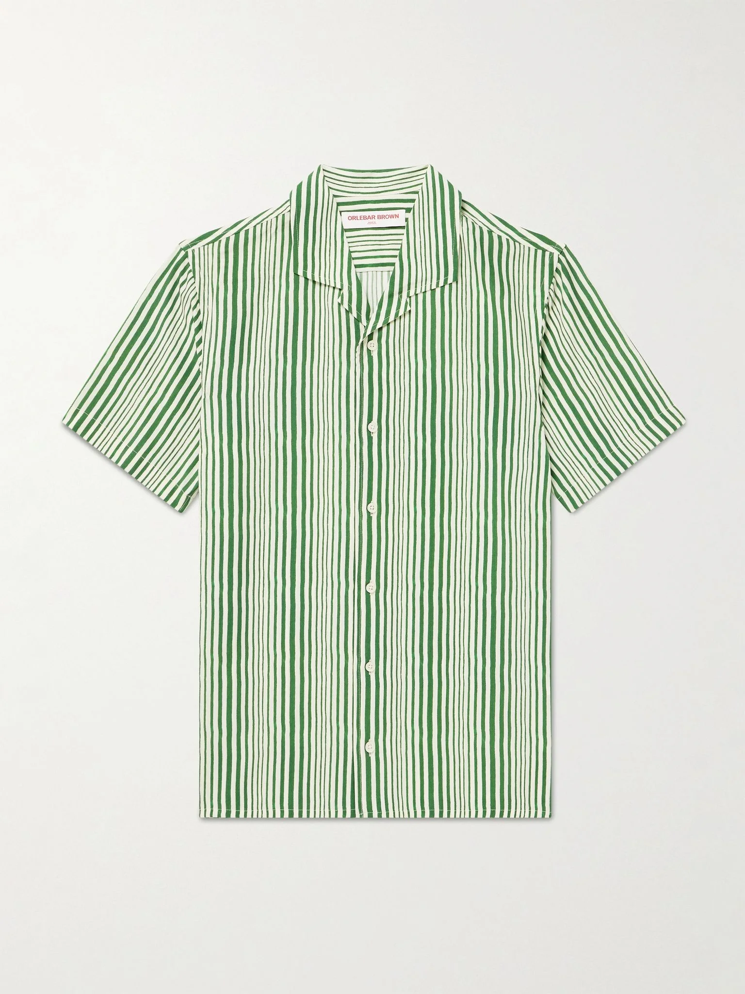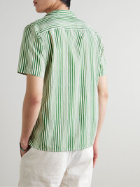 Hibbert Camp-Collar Striped Lyocell Shirt Green