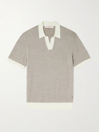 Orlebar Brown's 'Horton' polo shirt is knitted from soft, moisture-wicking merino wool and cotton-blend in a slim fit and framed by contrasting ribbed trims. The open collar feels a touch more relaxed than traditional styles. Size & Fit - Fits true to size. Take your normal size - Designed for a slim fit - Lightweight knit - Model is shown wearing a M - Model measures: chest 38"/ 96cm, height 6'3"/ 191cm Details & Care - Light-sand and brown merino wool and cotton-blend - 80% merino wool, 20% cotton - Machine wash - Designer colour: Morel Brown/ White Sand