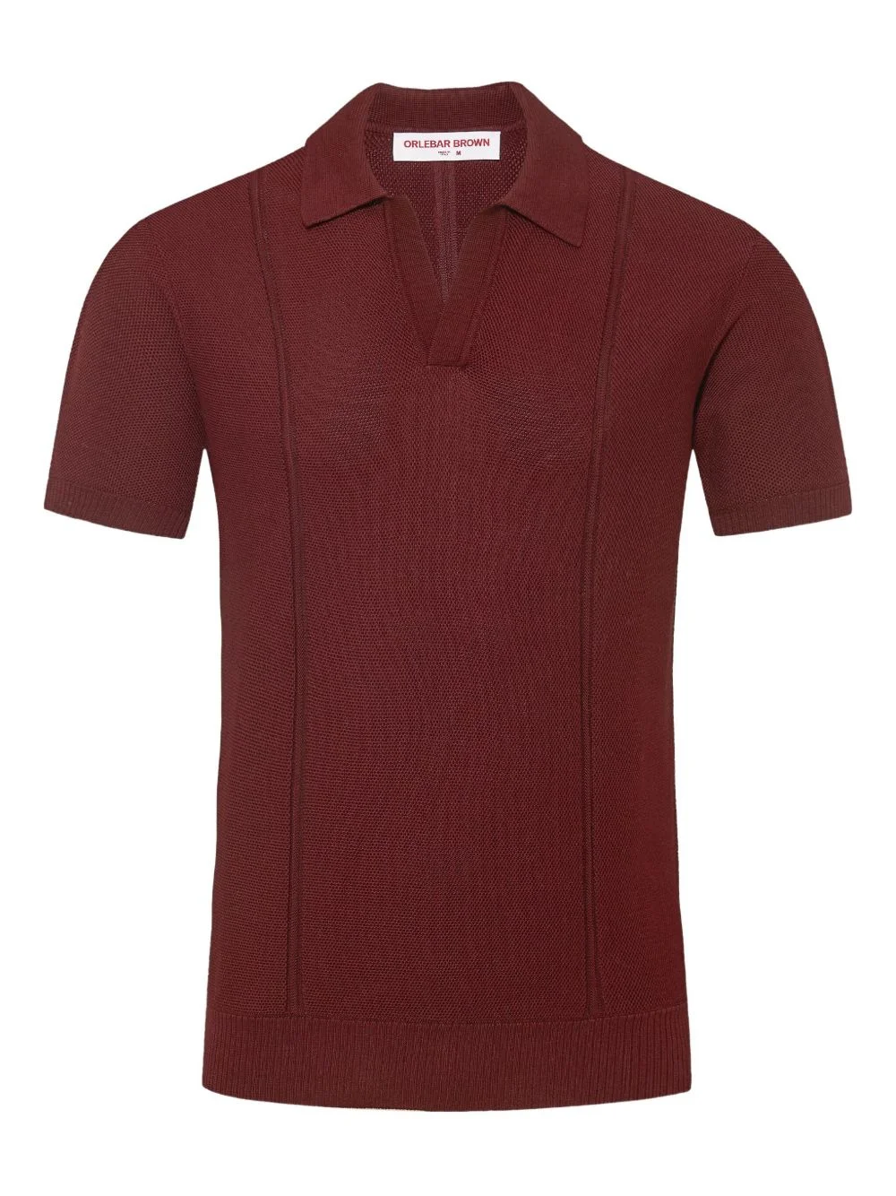Horton pique-texture polo shirt Highlights - Dark red - Pique texture - Short sleeves - V-neck - Central-seam detail - Small multicoloured flag detail Made in Italy Composition Organic Cotton 100% Washing instructions Read Manufacturer Guidelines