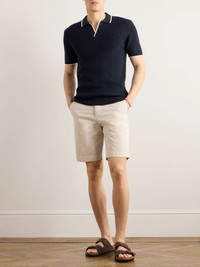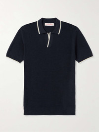 Orlebar Brown has become a gold standard for sophisticated resortwear. Impeccably tailored and obsessively detailed, the 'Horton' polo shirt is knitted from merino wool that's naturally sweat-wicking, thermo-regulating and UV-resistant. It has a relaxed open collar and fresh white tipping for a stylish contrast. Size & Fit - Fits true to size. Take your normal size - Designed for a regular fit - Mid-weight, slightly stretchy fabric - Model is shown wearing a M - Model measures: chest 38"/ 96cm, height 6'2"/ 188cm Details & Care - Navy and white merino wool - 100% merino wool - Hand wash