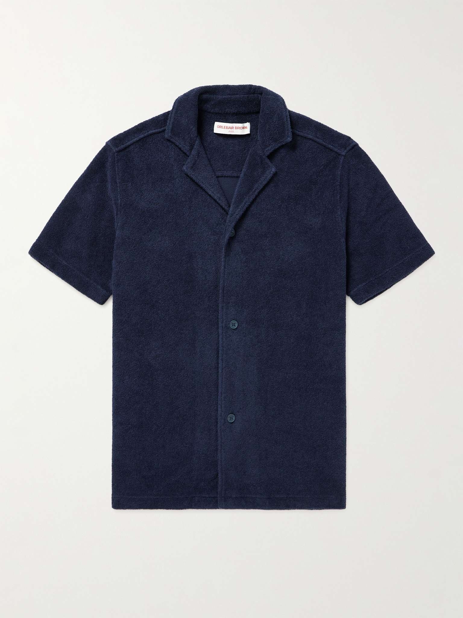 Orlebar Brown's 'Howell' shirt is ideal for days spent by the pool, whether at home or on holiday. It's cut from the label's signature 'towelling' fabric - a soft, plush and absorbent cotton-terry - and has a relaxed camp collar. Size & Fit - Those who are above 6'1"/ 185cm may wish to take the next size up - Designed for a regular fit - Mid-weight, stretchy fabric - Model is shown wearing a M - Model measures: chest 36"/ 92cm, height 6'2"/ 188cm Details & Care - Navy cotton-terry - Button fastenings - 100% cotton - Machine wash - Designer colour: Night Iris