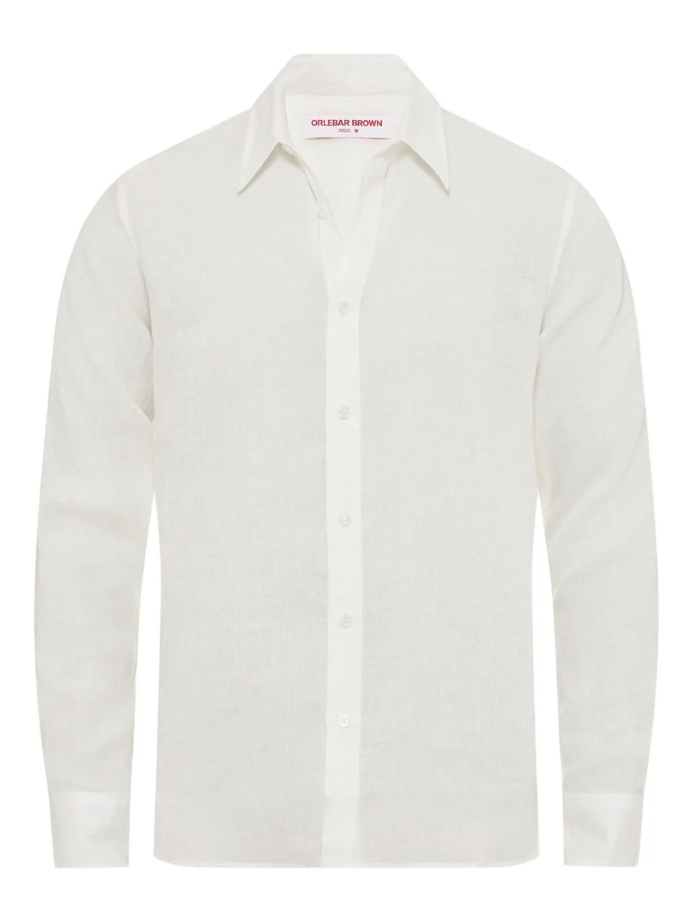 Justin pointed-collar linen shirt Highlights - White - Linen/flax - Semi-sheer construction - Pointed flat collar - Front button fastening - Drop shoulder - Long sleeves - Buttoned cuffs - High-low curved hem Imported Composition Linen/Flax 100% SIZE & FIT FittingInformation Designed for a relaxed fit, this piece allows for comfort and movement when worn Made from a midweight non-stretch fabric This piece fits true to size – take your usual size Measurement CHEST 41.73 in(106 cm) SLEEVE LENGTH 33.85 in(86 cm) LENGTH 29.92 in(76 cm)