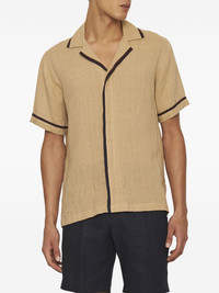 linen shirt Highlights - Beige - Front button fastening - Short sleeves - Contrasting trim - Straight hem Imported Composition Linen/Flax 100% Washing instructions Machine Wash