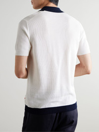 Orlebar Brown's striped 'Tiernan' shirt is a warm-weather take on classic bowling styles. Featuring drop-needle and Milano stitching, it's made from lightweight, breathable organic cotton-pique that's mercerised for softness and durability. Size & Fit - Fits true to size. Take your normal size - Designed for a slightly loose fit - Lightweight knit - Model is shown wearing a M - Model measures: chest 38"/ 96cm, height 6'3"/ 191cm Details & Care - White and navy organic cotton-pique - Button fastenings - 100% organic cotton