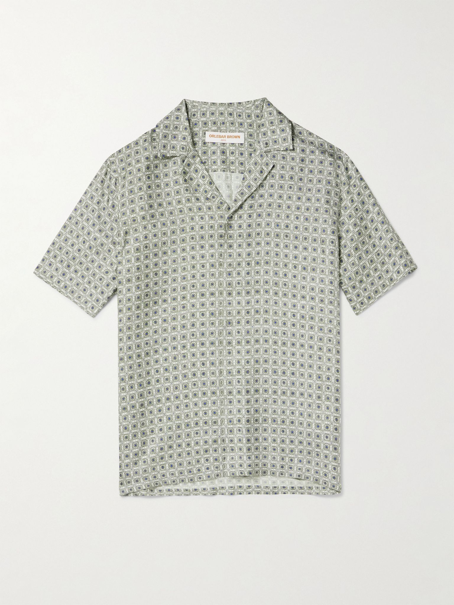 Maitan Camp-Collar Printed Silk-Satin Shirt Gray