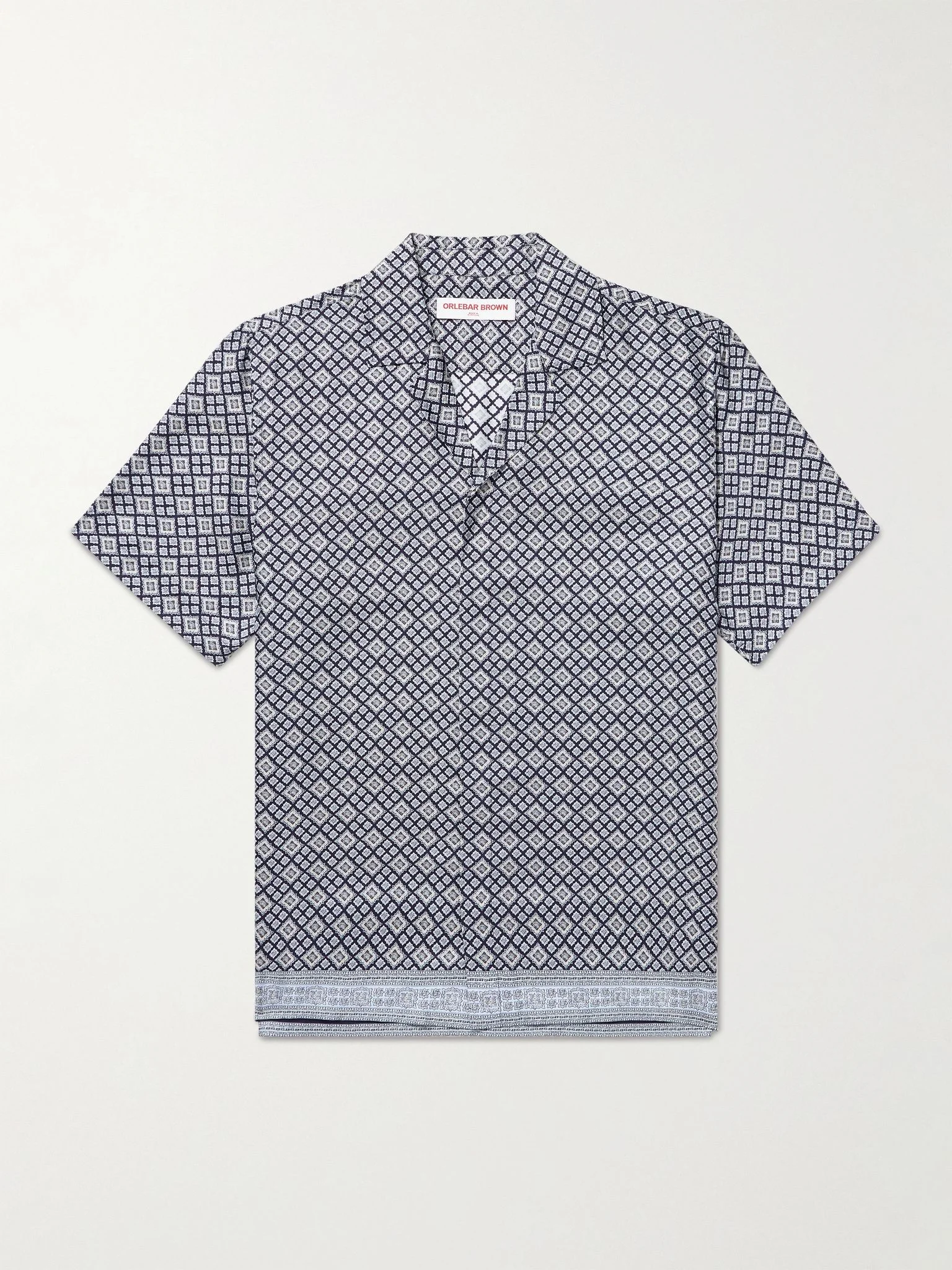 Maitan Camp-Collar Printed Silk-Twill Shirt Navy