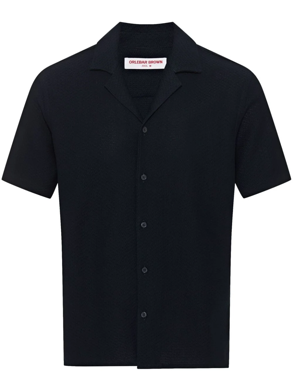 Maitan shirt Highlights - Midnight blue - Cotton - Open weave - Front button fastening - Cuban collar - Short sleeves - Straight hem Imported Composition Cotton 100%