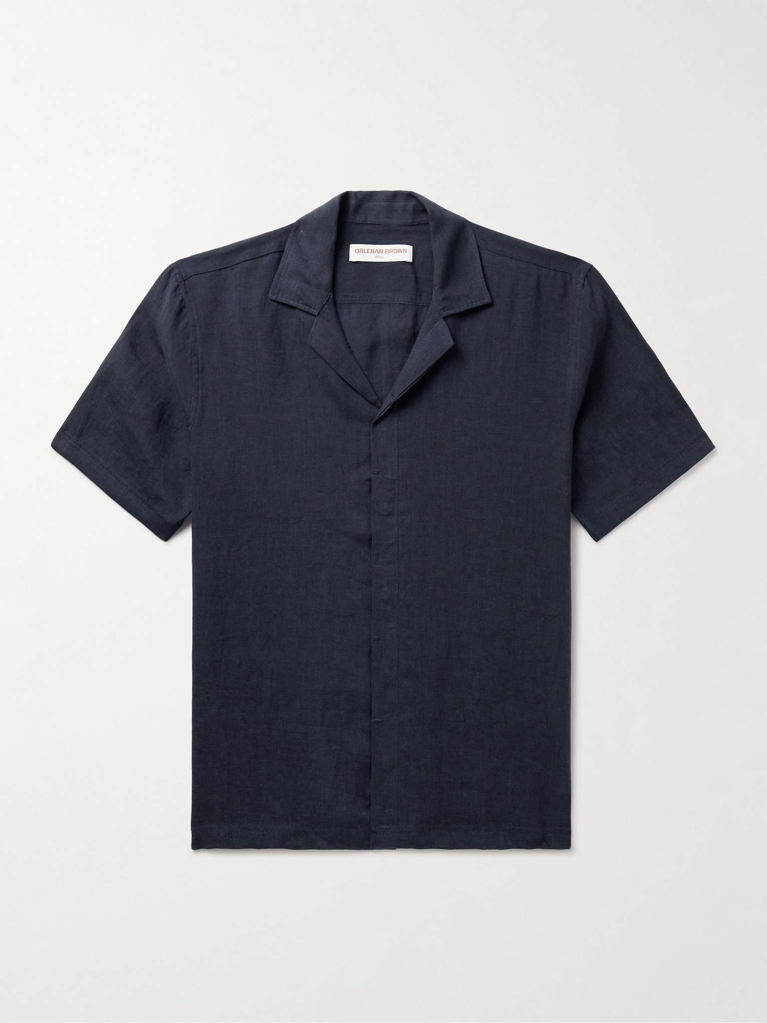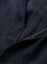 Orlebar Brown's 'Maitan' shirt is cut in a loose shape from Italian linen with naturally cooling, breathable properties. It has a relaxed camp collar and streamlined covered placket. Those who are familiar with the brand will recognize the signature striped embroidery along the side. Size & Fit - Fits true to size. Take your normal size - Designed for a relaxed fit - Lightweight, stretchy fabric - Model is shown wearing a M - Model measures: chest 38"/ 96cm, height 6'2"/ 188cm Details & Care - Midnight-blue linen - Button fastenings - 100% linen - Machine wash - Designer colour: Night Iris