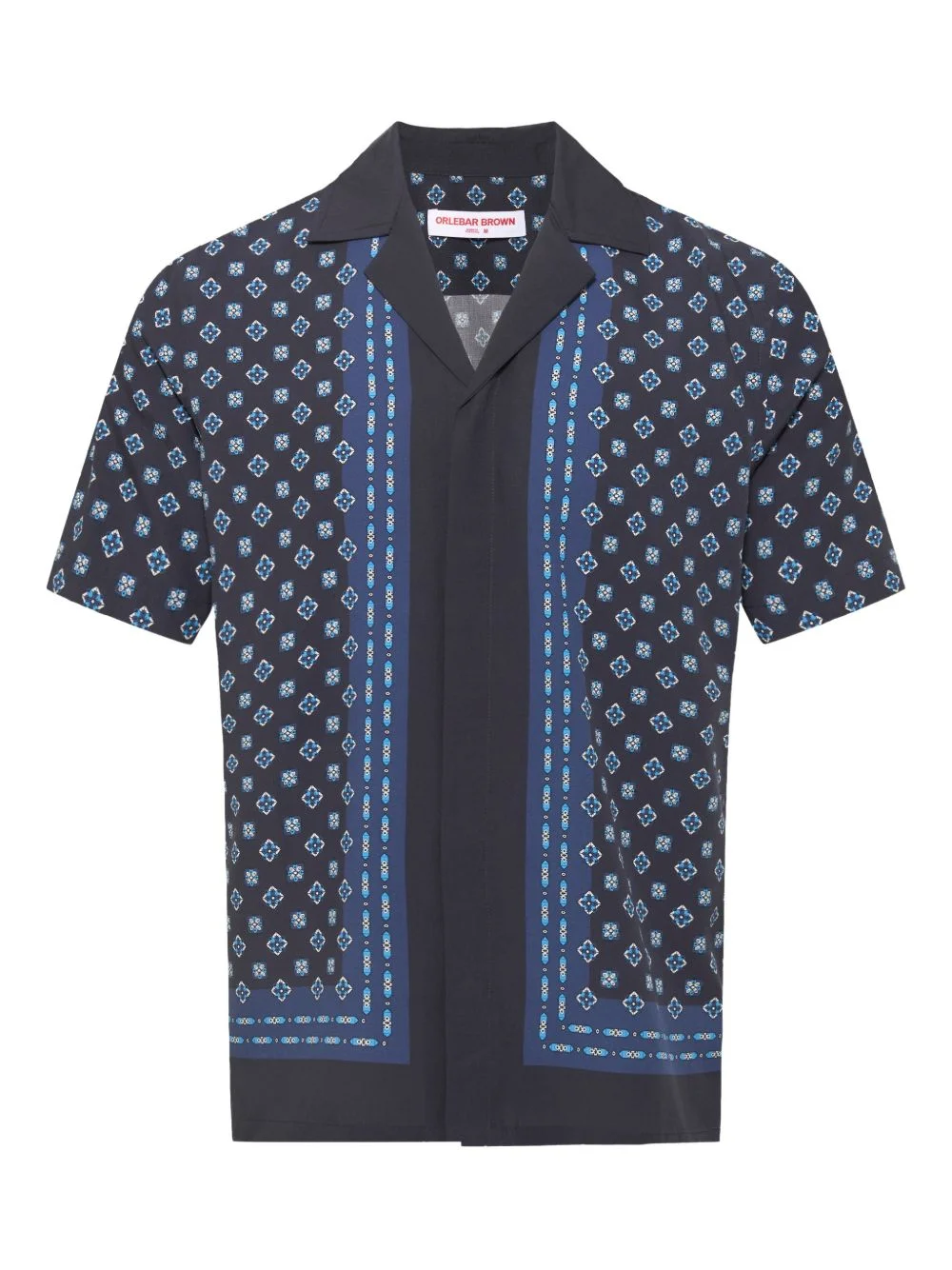 Maitan shirt Highlights - Night iris blue - All-over print - Border detail - Camp collar - Short sleeves - Concealed fastening Imported Composition Lyocell 100% Washing instructions Machine Wash