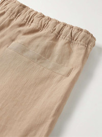 Manifest your next holiday with Orlebar Brown's easy-going 'Alex' trousers. Trimmed with contrasting piping, they're cut from lightweight linen and have a comfortable elasticated drawstring waistband. Wear yours with a breezy camp-collar shirt. Large to size. See Size & Fit notes. Size & Fit - Fits large to size. Take one size smaller than normal - Tapered leg, mid-rise style - Adjustable at the waist - Lightweight, non-stretchy fabric - Model is shown wearing a 30 - Model measures: waist size 32, height 6'1"/ 185cm Details & Care - Sand and black linen - Button, hook and zip fastening - 100% linen; lining: 100% cotton - Dry clean - Designer colour: Biscuit/ Damson