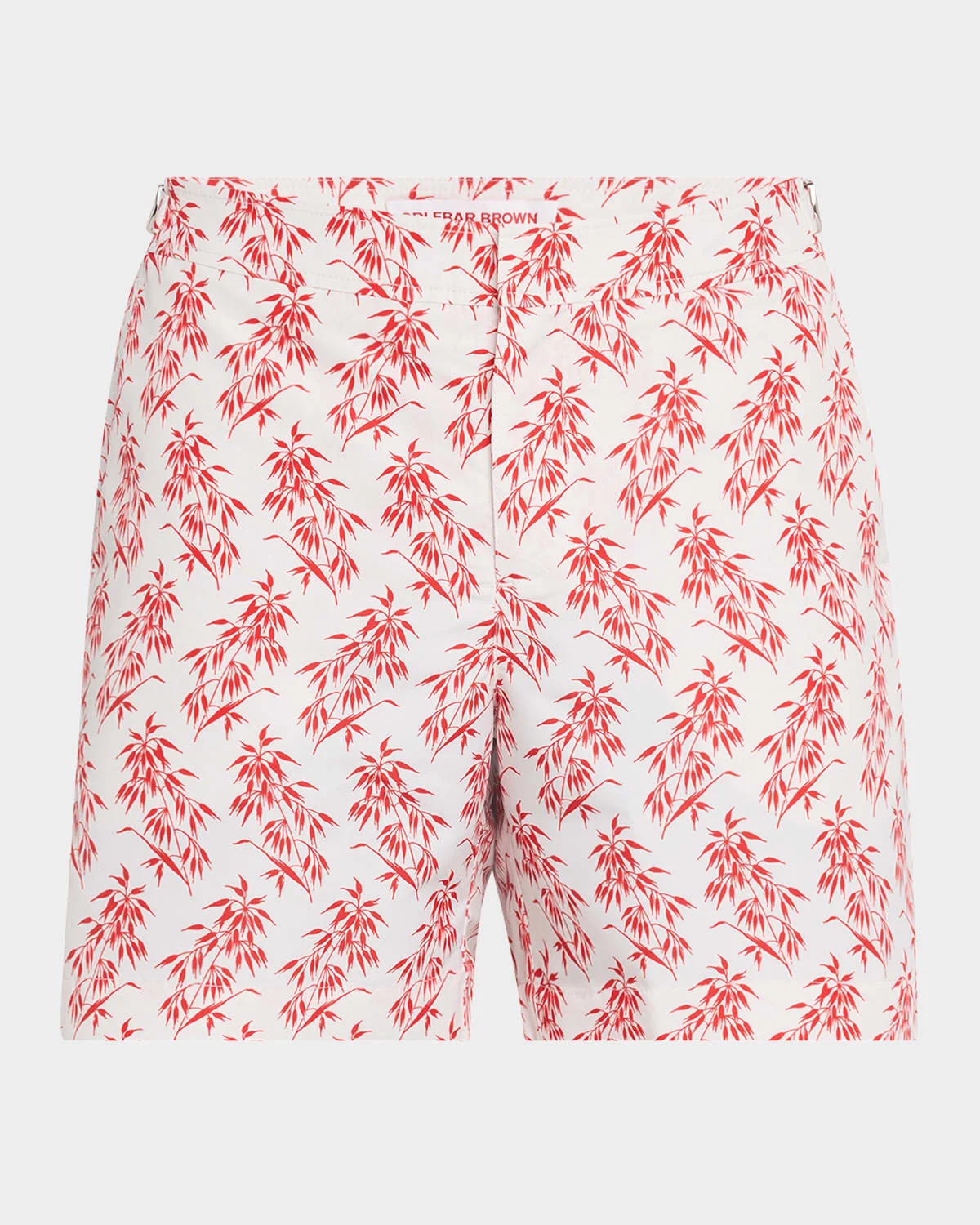 - Orlebar Brown swim shorts showcasing an elegant bamboo print, set against the brand's signature White Sand color palette - Approx. measurements: - 6" rise; 6" inseam - Nickel-effect side fasteners - Nickel-effect concealed snap closure - Side slant pockets - Back pocket with zipper closure - Signature Bulldog fit - Polyester - Lining: Mesh/nylon - Machine wash cold - Made in Portugal