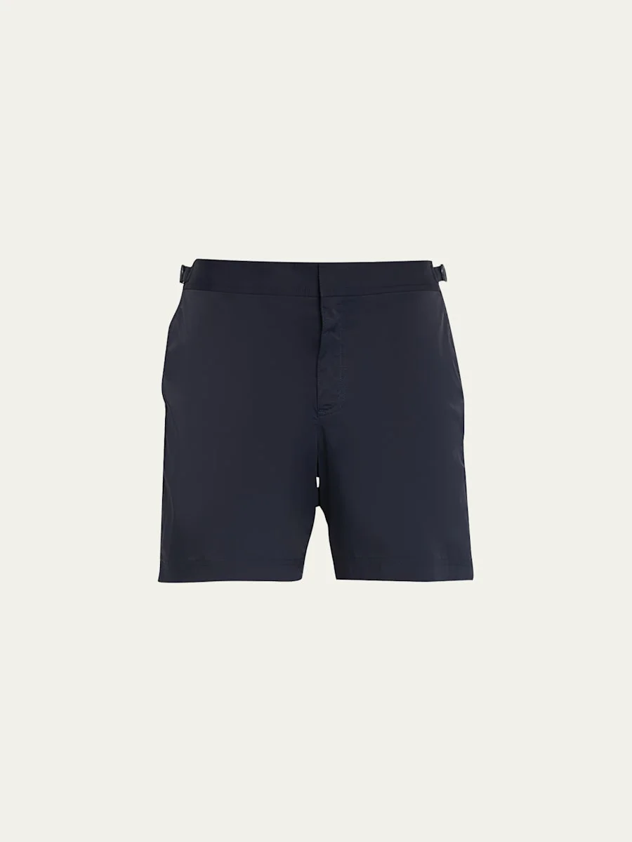 Orlebar Brown "Bulldog" iridescent swim shorts with contrast piping Side adjusters Snap closure Side slip pockets Back zip pocket Mid length Nylon/elastane Lining: Nylon Machine wash cold Made in Portugal Model is 6'1"/185cm. Online Inquiries: BGS21_NB3CD| Store Inquiries: #4576520