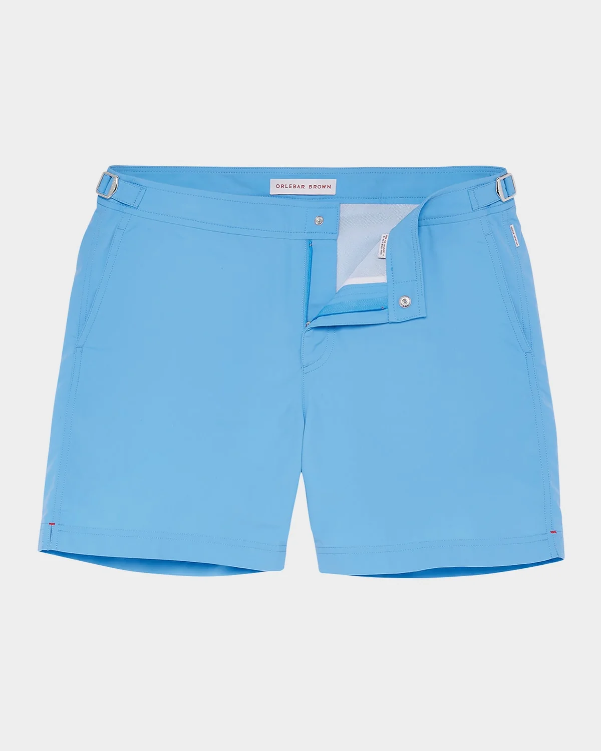 - Orlebar Brown solid swim shorts in lightweight, quick-drying nylon - Regular rise - Signature adjustable side fasteners - Concealed snap closure - Front slant pockets - Back welt pocket with zipper closure - Mid length - Nylon mesh lining - Machine wash cold - Made in Portugal