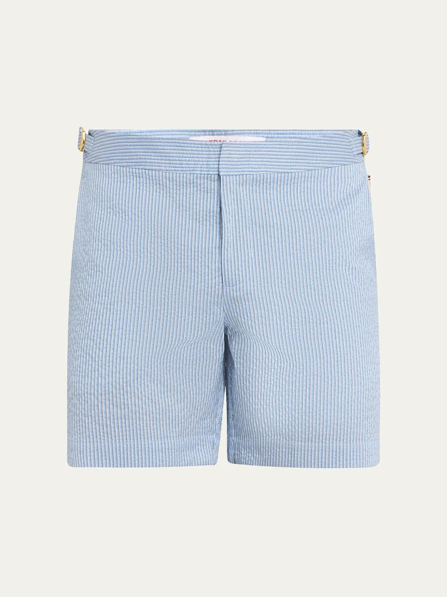 Men's Seersucker Stripe Mid-Length Swim Shorts