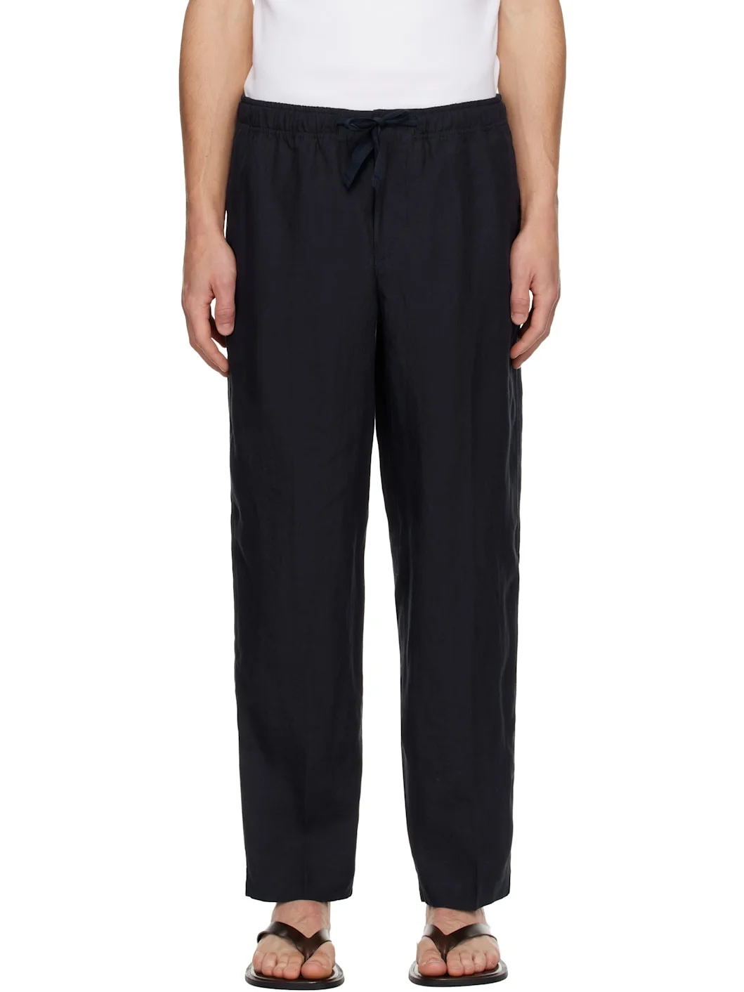 Linen hopsack trousers. · Loose-fit · Drawstring at elasticized waistband · Four-pocket styling · Zip fly Supplier color: Night iris Body: 100% linen. Trim: 100% cotton. Made in Portugal 251314M191015