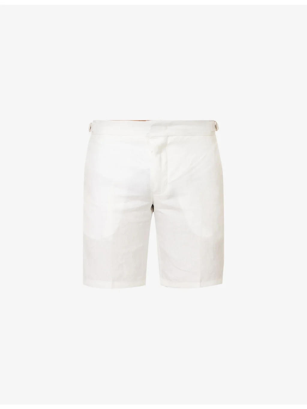 Norwich two-slip-pockets mid-rise regular-fit linen shorts