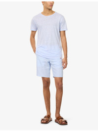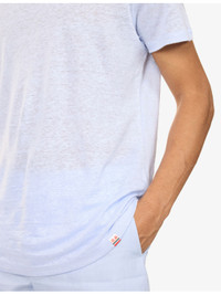 PRODUCT DETAILS - Orlebar Brown linen T-shirt - 100% linen - Regular fit, crewneck, short sleeves, brand tab at front - Machine wash at 30°C - Made in Portugal - Model is 6ft 2in/1.88m and wears a size medium - Lightweight, stretchy Ref: R04548894