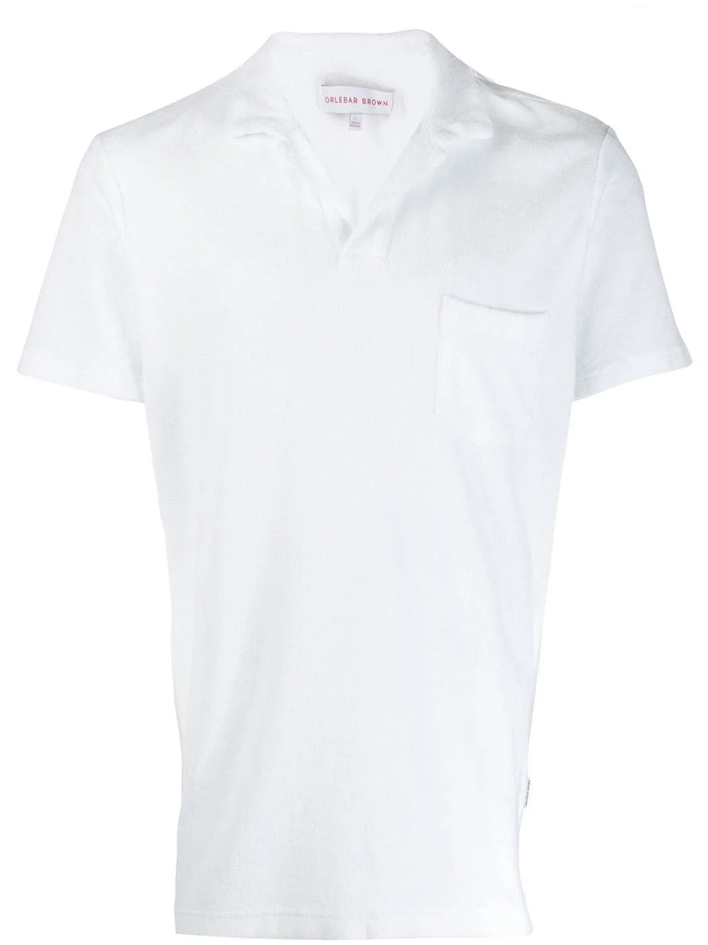 terrycloth polo shirt White cotton terrycloth polo shirt from Orlebar Brown featuring a spread collar, a chest pocket, short sleeves and a straight hem. Imported Composition Cotton 100% SIZE & FIT Model measurements Height 6 ft 2 in(1.87 m) Bust/Chest 38.18 in(97 cm) Hips 36.61 in(93 cm) Waist 29.13 in(74 cm) FittingInformation This piece fits true to size. We recommend you get your regular size Cut for a relaxed fit Made with a mid-weight fabric Washing instructions Machine Wash