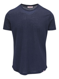 round-neck T-shirt Highlights - Navy blue - Linen - Navy blue - Round neck - Short sleeves - Tonal stitching Imported Composition Linen/Flax 100%