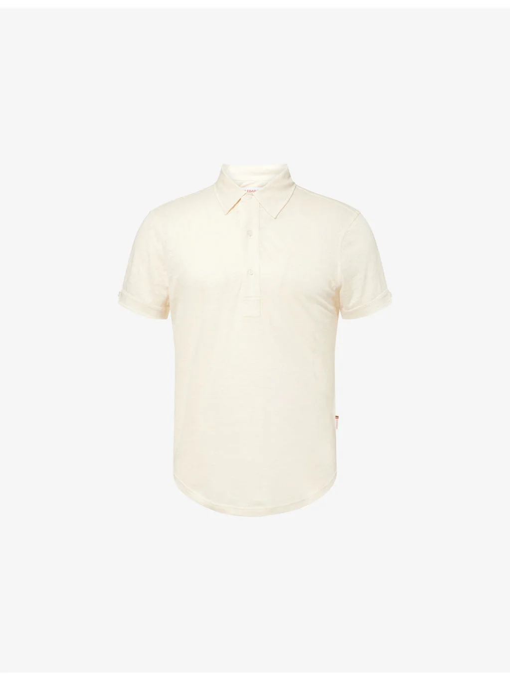 PRODUCT DETAILS - Orlebar Brown linen polo shirt - 100% linen - Exposed button fastening at front - Polo collar - Closed cuffs - Regular fit, collar, short sleeves, brand tab at side, curved hem - Machine wash at 30°C - Made in Portugal - Model is 6ft 2in/1.88m and wears a size medium - Lightweight, stretchy Ref: R04564661