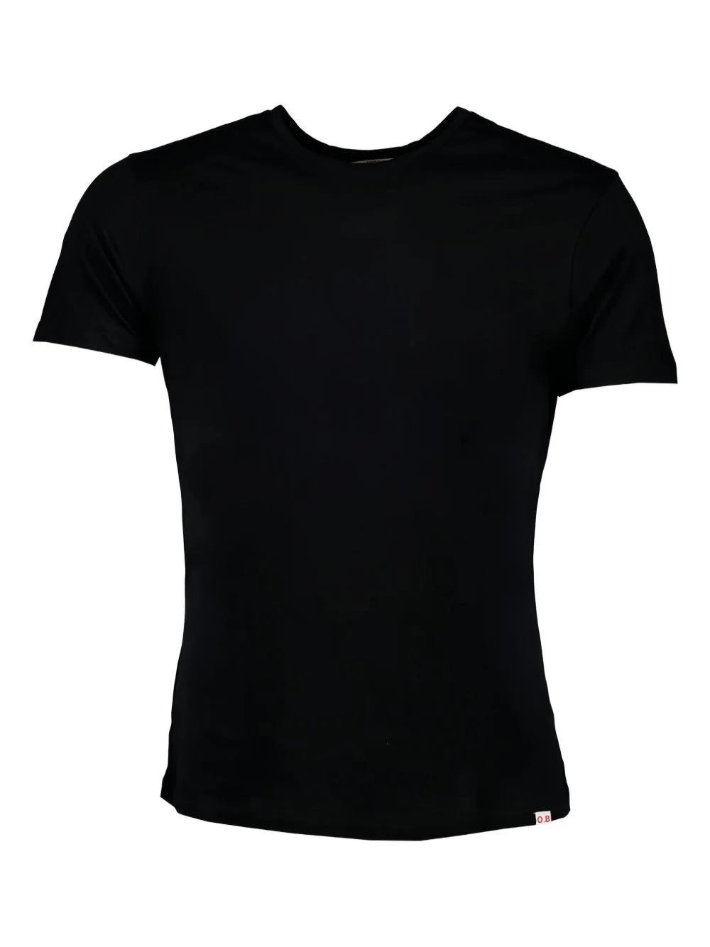 short sleeved cotton t-shirt Highlights - This black orlebar brown short sleeved cotton t-shirt is crafted from 100% cotton in a regular fit. it features short sleeves, a rounded neckline, a curved hemline, tonal stitching and is embellished with an embroidered contrasting white label attachment on the hem showcasing the brand’s initials in gold text print. according to yohji yamamoto, black says: “i don’t bother you – don’t bother me”. wear this orlebar brown tee on a heavy hang when you really want them to get the message. Imported Composition Cotton 100% Washing instructions Machine Wash