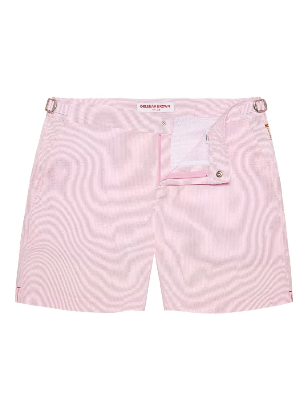 striped swim shorts Highlights - Light pink - Striped pattern - Side pockets - Adjustable buckle straps - Concealed zip and press-stud fastening - Logo patch detail - Be mindful to try on swimwear over your own garments. Imported Composition Outer: Polyester 34%, Polyamide 34%, Elastomultiester 32% Lining: Polyester 100% Washing instructions Machine Wash