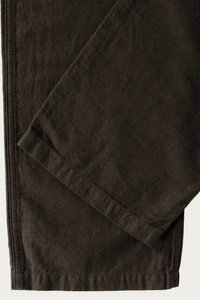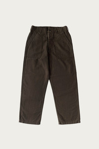 The Relax Fit Cotton‐Linen Moleskin Fatigue Pants in charcoal gray are a quietly refined update on the workwear staple. Cut with a relaxed rise and straight leg, these pants balance ease and structure with comfort from day one. The fabric blends cotton and linen into a softly brushed moleskin texture, making them an ideal piece from early fall through spring. Signature fatigue details like oversized patch pockets and adjustable waist tabs bring utility, while the muted charcoal tone lends versatility across your wardrobe. Made in Japan with careful craft, these are pants you’ll wear often without feeling like you’re trying too hard.