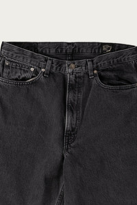 The 100 Super Dad's Fit Denim is mean't to mimic the denim made popular in the 90's for its relaxed fit and comfortable washes. The Super Dad's fit features a comfortable high rise with extra room in the seat and thigh helping it drape well and give you plenty of room up top with a wider leg below for an easy to wear pair of jeans that pair well with almost anything and a fit that has become a new fan favorite. Fit has a straight fit and fits true to size. - 100% Cotton - Wide Fit Leg and Seat - Japanese Denim - Pre-Washed - Zip Fly - Five Pocket Construction - Made in Japan - Black Denim Stone