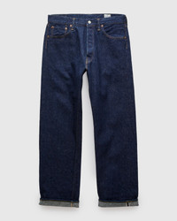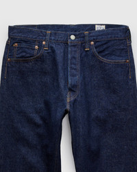 Commemorating the brand’s 20th anniversary, this special-edition jean from orSlow faithfully reproduces 1950s selvedge denim from yarn to stitch. The 1950s XX fabric uses yarn spun on a 1953 spinning machine, woven on vintage shuttle looms for a nep-surface texture, and dyed to a rich red-cast indigo that closely mirrors denim of the era. Finished with a smooth leather patch, copper rivets, a four-button fly, and pink selvedge ID. - 20th Anniversary "1950s" 105XX edition - 13.7oz one-wash Japanese selvedge denim - orSlow 105 Standard fit – straight leg, medium high rise - Leather patch - Copper rivets - Four-button fly - Pink selvedge ID - 100% cotton - Made in Japan